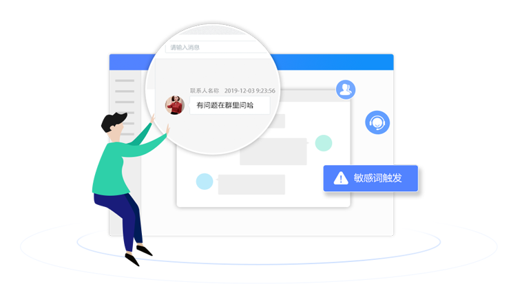 主管可查看員工和客戶的聊天內(nèi)容,并可以設(shè)置規(guī)則,對(duì)敏感行為 進(jìn)行記錄,一旦發(fā)生敏感行為,主管可及時(shí)收到提醒。